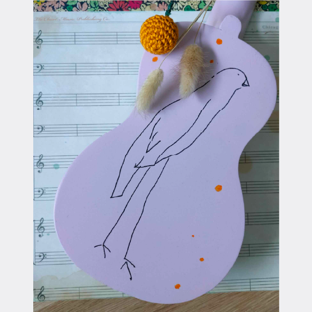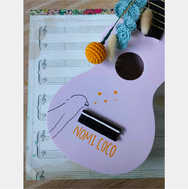 Marie vroeg ons om iets bijzonders te creëren voor haar metekindje, Nomi Coco. Ze droomde van een geboortecadeau dat even uniek zou zijn als het meisje zelf: de tekening van het geboortekaartje vereeuwigd op een ukelele.